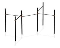 Универсальная конструкция спортивного комплекса для выполнения физических упражнений. Она состоит из пяти разноуровневых турников, все они надежно закреплены на опорных столбах.